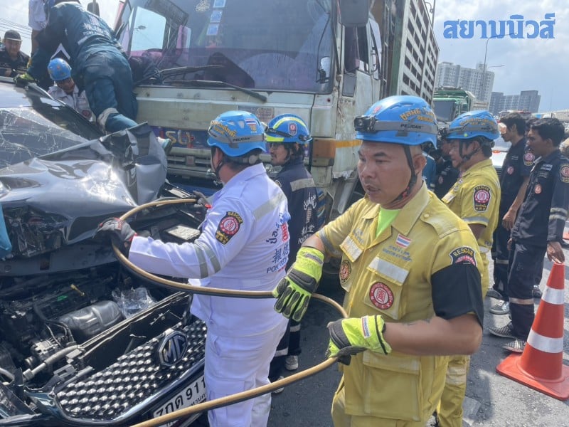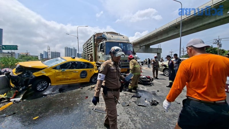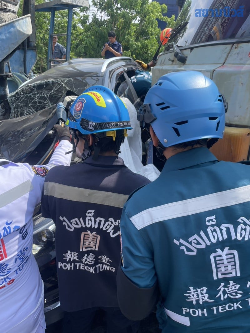 วันที่ 24 เม.ย. 2569 ร.ต.ท.คณชาญ สวัสดี รอง สว.(สอบสวน) สน.บางขุนเทียน รับแจ้งอุบัติเหตุรุนแรงรถชนกันหลายคัน มีผู้บาดเจ็บและเสียชีวิตจำนวนมาก บนทางแยกต่างระดับสวนเลียบ ใกล้สถานีรถไฟฟ้าบางหว้า ถนนราชพฤกษ์ แขวงปากคลองภาษีเจริญ เขตภาษีเจริญ กรุงเทพฯ จึงรุดไปตรวจสอบพร้อมเจ้าหน้าที่แพทย์นิติเวช รพ.ศิริราช และอาสาสมัครมูลนิธิป่อเต็กตึ๊ง
