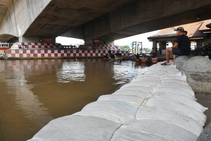 - ตรวจสอบแนวป้องกันน้ำท่วมริมแม่น้ำเจ้าพระยา