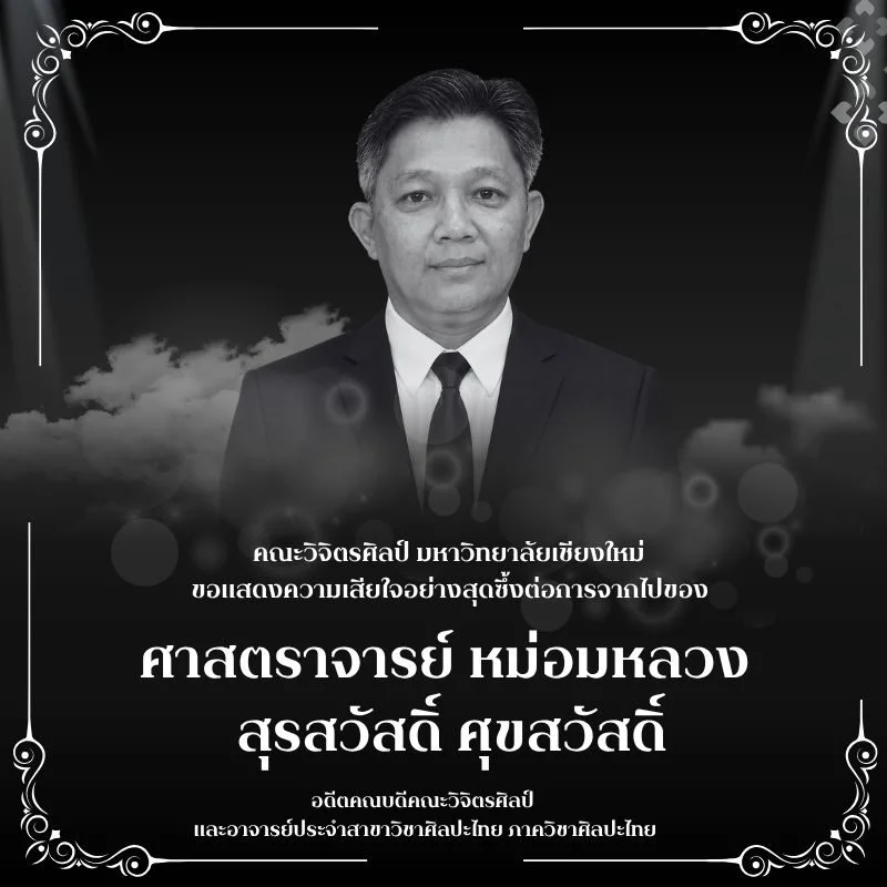 วันที่ 28 เมษายน 2569 คณะวิจิตรศิลป์ มหาวิทยาลัยเชียงใหม่ โพสต์ภาพและข้อความแสดงความอาลัยต่อการจากไปของ ศาสตราจารย์ หม่อมหลวง สุรสวัสดิ์ ศุขสวัสดิ์ อดีตคณบดีคณะวิจิตรศิลป์ และอาจารย์ประจำสาขาวิชาศิลปะไทย ภาควิชาศิลปะไทย คณะวิจิตรศิลป์ มหาวิทยาลัยเชียงใหม่ โดยระบุว่า