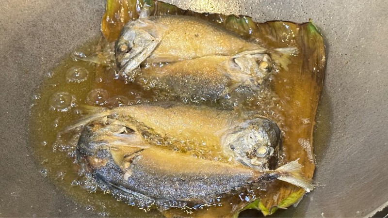 วิธีทอดปลาให้เหลืองกรอบด้วยใบตอง