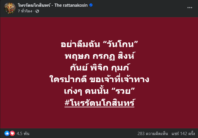 วันที่ 14 ตุลาคม 2568 เพจเฟซบุ๊ก โหรรัตนโกสินทร์ - The rattanakosin ได้โพสต์คำทำนายทายทักถึง 6 ลัคนา ระบุว่า อย่าลืมฉัน วันโกน