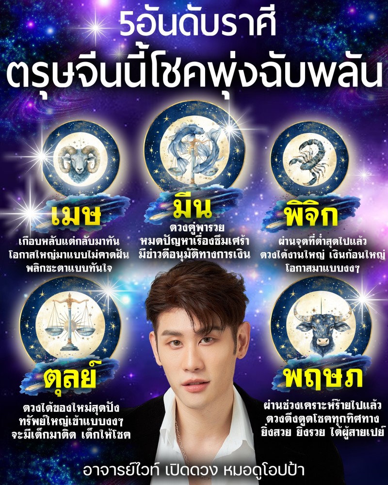เพจเฟซบุ๊ก อาจารย์ไวท์ หมอดูโอปป้า ได้โพสต์คำทำนายทายทักถึงดวงชะตา 5 อันดับราศี ตรุษจีนนี้โชคพุ่งฉับพลัน จะมีราศีใดบ้างที่จะได้เป็นผู้โชคดีรับตรุษจีนปีนี้ ไปดูกัน