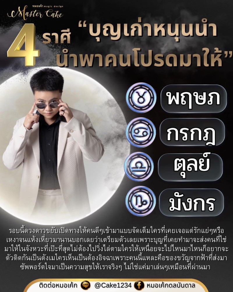 เพจเฟซบุ๊ก Massiri Saenrak ซึ่งเป็นเพจของหมอเค้ก หมอดูและนักพยากรณ์ชื่อดัง ที่หลาย ๆ คนรู้จักกันเป็นอย่างดี ได้ออกมาโพสต์ข้อความเปิดคำทำนายถึงดวงชะตา 4 ราศี เตรียมโบกมือลาความเหงาได้เลย เพราะในช่วงนี้คุณจะมีพลังของบุญเก่าหนุนนำ และนำพาคนโปรดมาให้ จะมีราศีใดบ้าง ไปดูกัน