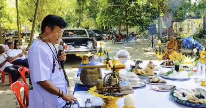 ทั้งนี้หมอพราหมร์ ประกอบพิธีหน้าโต๊ะเครืองเซ่นไหว้ขอคาว ของหวาน และผลไม้ ตามความเชื่อ ตามลำดับจนแล้วเสร ก่อนจะจุดประทัดถวาย ได้เลข 169, 45 ซึ่งบรรดาคอหวยไม่พลาดที่จะนำเลขไปซื้อ