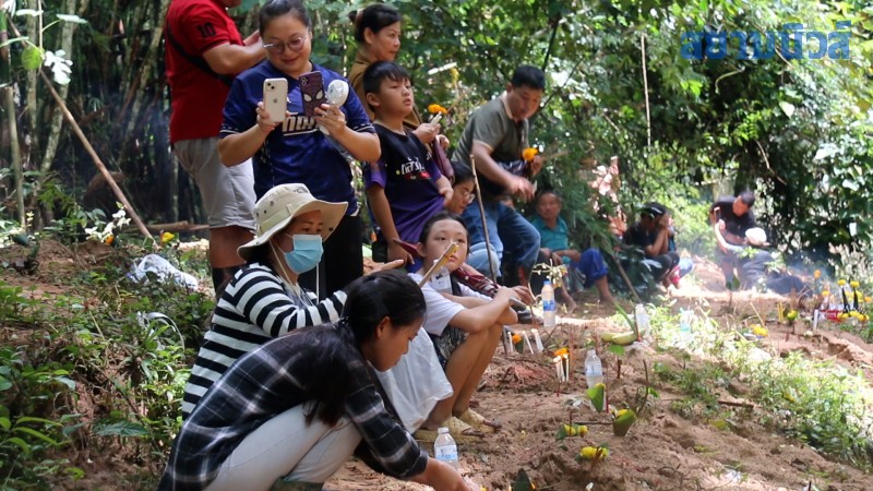 นายยิ่งยง จงไกรจักร อายุ 60 ปี เปิดเผยว่าตนอาศัยอยู่ที่แขวงบุคคโล กรุงเทพฯ ได้เห็นภาพหินที่มีลักษณะคล้ายงูใหญ่ทางโซเชียล จึงได้อธิฐานขอโชคขอลาภ ปรากฏว่าโชคดีถูกรางวัลในงวดวันที่ 1 ที่ผ่านมา วันนี้จึงตั้งใจมาถวายบายศรีโดยขับรถออกมาจากกรุงเทพประมาณตี3 และมาสว่างที่เพชรบูรณ์ โดยมากับเพื่อนอีก 3 คนซึ่งก็โชคดีเหมือนกัน ซึ่งก็ได้นำบายศรีและน้ำแดงมาถวายด้วยพร้อมทั้งจุดธูปมงคลเพื่อนำไปเสี่ยงโชคในงวดวันที่ 16 ต.ค. 2568 ที่จะถึงนี้ โดยเลขที่ได้คือ 186 และ 896
