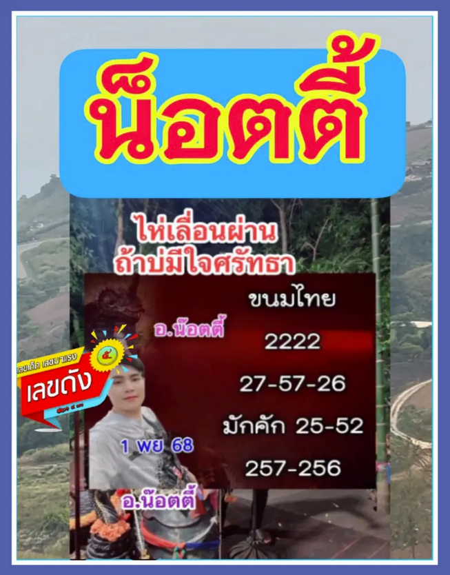 ใกล้ถึงวันออกสลากกินแบ่งรัฐบาลงวดวันเสาร์ที่ 1 พฤศจิกายน 2568 คอเลขทั่วประเทศเริ่มจับตาแนวทางเลขนำโชคจากสำนักดังต่าง ๆ โดยหนึ่งในชื่อที่ถูกพูดถึงอย่างต่อเนื่อง คือ อาจารย์น็อตตี้ ตำหนักปู่ใหญ่ เซียนตัวเลขชื่อดังที่มีผู้ติดตามเป็นจำนวนมาก ซึ่งได้กลับมาปล่อยแนวทางต่อเนื่อง และถูกใจแฟนเลขหลายงวดติด