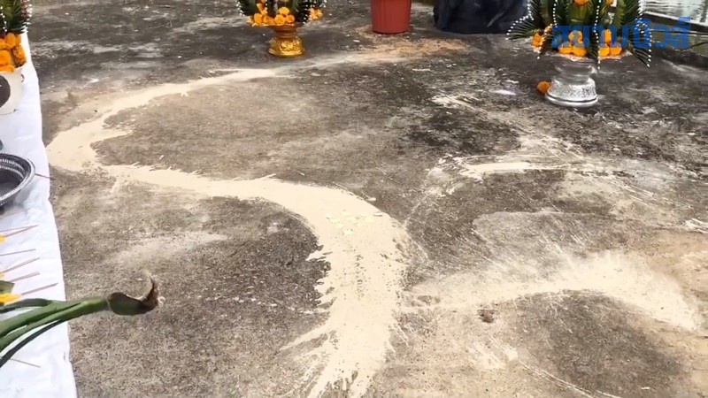 เมื่อเดินทางไปถึงชาวบ้านจำนวนหนึ่ง กำลังพูดถึงรอยประหลาดดังกล่าว โดยเชื่อกันว่า คือ รอยปู่พญานาค และเมื่อปี 2564 ก็เคยมีปรากฏแบบนี้ มีรอยคล้ายรอยพญานาคขึ้นไปบนรถของคนที่มาทำบุญที่วัด แล้วคอหวยก็นำ เลขทะเบียนรถไปเสี่ยงโชค ปรากฏว่าถูกรางวัลกันหลายคน ขณะที่รอยประหลาดที่ปรากฏครั้งนี้ นอกจากคล้ายรอยพญานาคแล้ว ยังมีกลิ่นหอมคล้ายน้ำอบไทย อย่างน่าประหลาดใจ