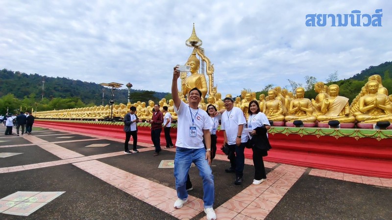 วันที่ 15 ธ.ค. 2568 ผู้สื่อข่าวรายงานว่า บริเวณอุทยานมาฆบูชาอนุสรณ์ สวนพุทธยันตี 2600 ปี ตำบลสาริกา อำเภอเมือง จังหวัดนครนายก ได้มีนักท่องเที่ยวบรรดาสายมูและสายเซลฟี่ รวมถึงนักเสี่ยงโชค พากันมาชมความงดงามของสถานที่แห่งนี้ ที่มีวิหารที่สวยงามและมีพระอรหันต์สาวกที่มีขนาดหน้าตักกว้าง 90 เซนติเมตรสูง 1.50 เมตร จำนวน 1,250 องค์ล้อมรอบพระพุทธรูป ตั้งเด่นสง่าอยู่ในหุบเขาซึ่งมีความงดงามเป็นอย่างมาก