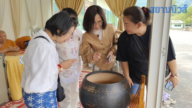 จากนั้น ได้ลงจากวิหารมากราบไหว้พระครูธรรมธรณรงค์ธัช (หลวงเตี่ย) พร้อมให้หลวงเตี่ยได้เจิมฝ่ามือและโทรศัพท์เสริมโชคบารมีดวงชะตาของชีวิตหน้าที่การงาน เพื่อเป็นสิริมงคลให้กับตัวเอง ยิ่งใกล้วันแห่งความหวังหลายคนไม่พลาดส่งเลขอ่างน้ำมนต์ โดยเฉพาะ 4 สาวที่เดินทางมาจากจังหวัดลำปาง บอกว่า เดินทางมาไกลงานนี้ขอเอาเลขในอ่างน้ำมนต์ ที่อยู่เรียงกันมีเลข 5479 จะขอเอาตัวเลขทั้งหมดกลับไปเสี่ยงโชค