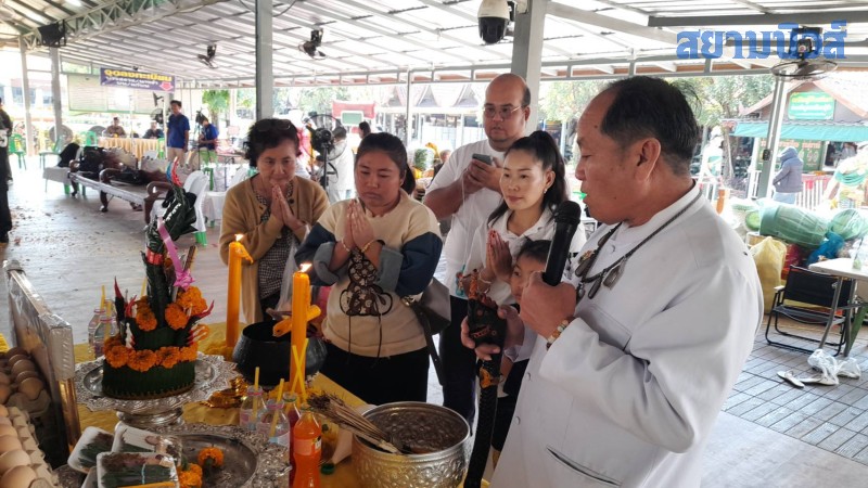 สำหรับคนที่ชอบเสี่ยงโชค พลาดไม่ได้ต้องหาตัวเลขในใจ ที่ลานบวงสรวงวันนี้มีการตั้งโต๊ะมีทั้งบวงสรวงแก้บนมีโต๊ะบวงสรวงตั้งโต๊ะแก้บนที่เคยบนขอพรจากพ่อปู่แม่ย่าไว้ขอให้มีเงินสร้างบ้านราคาสองล้านบาท สร้างเสร็จตามความตั้งใจวันนี้จึงนำไข่จำนวน 9,000 ฟองมาแก้บน หลังพิธีเสร็จแล้วพลาดไม่ได้ต้องส่องขันน้ำมนต์ มีตัว 37,73,และ 08,80 บังเอิญน้ำตาเทียนไปตรงกันมี 73 และ 62