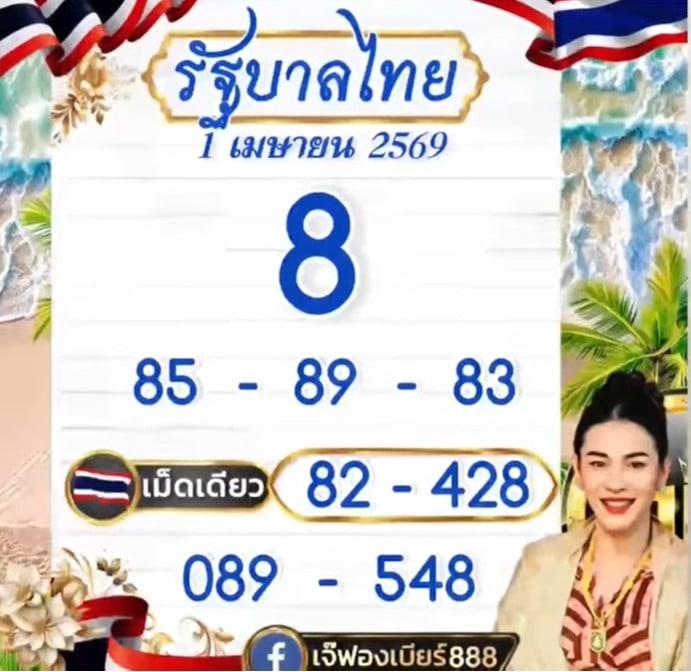 ใกล้จะรู้ผลอีกแค่ไม่กี่ชั่วโมงแล้ว สำหรับการประกาศรางวัลประจำวันที่ 1 เมษายน 2569 หลายคนอาจมีเลขในใจกันอยู่แล้ว แต่สำหรับใครที่ยังไม่มี วันนี้ทีมงานสยามนิวส์ก็ได้นำเลขของ เจ๊ฟองเบียร์ มาฝากกันอีกเช่นเคย เผื่อจะถูกรางวัลรับโชคเหมือนคนอื่นบ้าง
