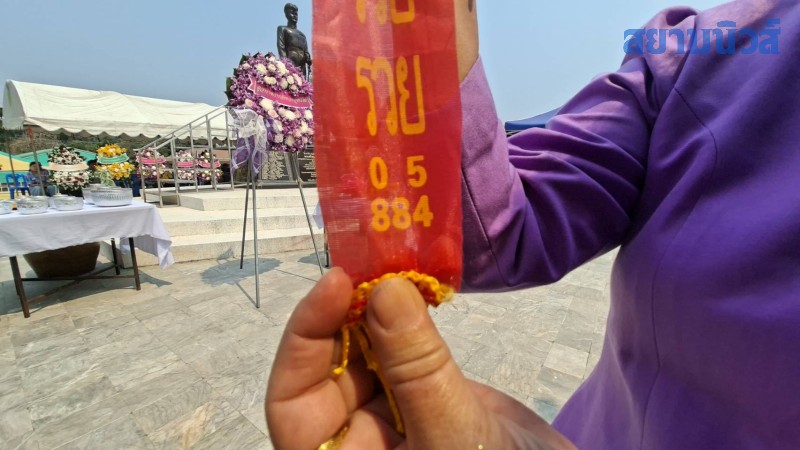 ในขณะเดียวกันประชาชนที่มาร่วมพิธีได้มีการจุดธูปขอโชครับโชคปีใหม่ไทย ซึ่งจุดธูปเสี่ยงโชคต่อหน้าพระศรีพนมมาศ ณ แท่นบวงสรวง ซึ่งภายหลังจากธูปไหม้หมด ปรากฏเป็นตัวเลข 995 ซึ่งชาวบ้านสายมูต่างก็นำโทรศัพท์มาถ่ายรูปไว้เพื่อนำไปเสี่ยงโชค หวังเป็นเศรษฐีต้อนรับปีใหม่ไทยนอกจากนี้ ก่อนเสร็จสิ้นพิธีบวงสรวงพระศรีพนมมาศ นายอำเภอคนแรกของชาวลับแล สายมูยังได้จุดประทัศถวายสิ่งศักดิ์สิทธิ์ขอโชคขอลาภ โดยภายหลังจากการจุดประทัด เลขหางประทัดที่ได้คือ เลข 2 ตัวคือ 05 เลข 3 ตัวคือ 884 สายมูต่างนำโทรศัพท์มาถ่ายรูปไว้ เพื่อนไปเสี่ยงโชคในงวดที่จะมาถึงอีกด้วย