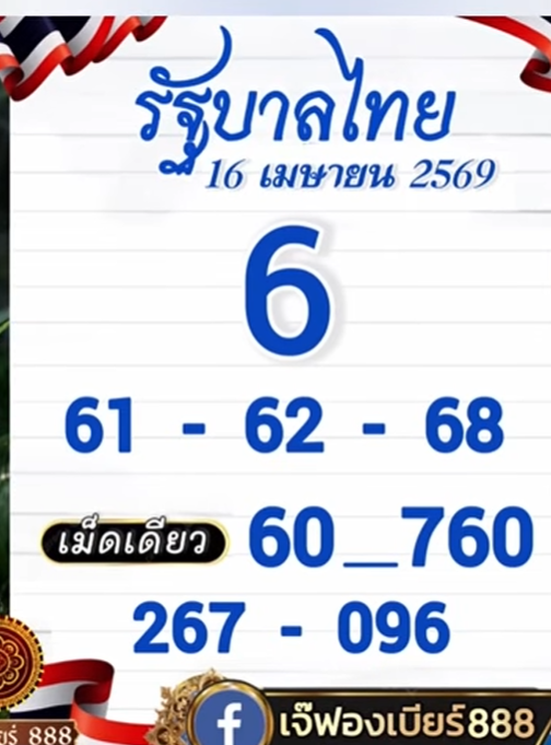 ใกล้จะรู้ผลอีกแค่ไม่กี่ชั่วโมงแล้ว สำหรับการประกาศรางวัลประจำวันที่ 16 เมษายน 2569 หลายคนอาจมีเลขในใจกันอยู่แล้ว แต่สำหรับใครที่ยังไม่มี วันนี้ทีมงานสยามนิวส์ก็ได้นำเลขของ เจ๊ฟองเบียร์ มาฝากกันอีกเช่นเคย เผื่อจะถูกรางวัลรับโชคเหมือนคนอื่นบ้าง