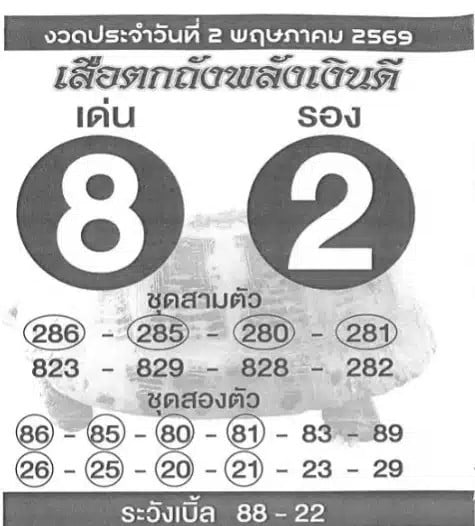 งวดเก่าผ่านไป งวดใหม่ใกล้เข้ามาแล้ว สำหรับการประกาศผลรางวัลสลากกินแบ่งรัฐบาลงวดประจำวันที่ 2 พฤษภาคม 2569 หลายสำนัก เจ้าพ่อเจ้าแม่ ต่างก็ทยอยปล่อยเลขดังของตัวเอง ออกมาให้เหล่านักเสี่ยงดวงเสี่ยงโชคได้นำไปพิจารณากัน แต่สำหรับใครที่ยังไม่มีเลขในใจ วันนี้เรามีเลขจาก เสือตกถังพลังเงินดี มาให้คอหวยได้เก็บไปพิจารณากันอีกหนึ่งช่องทาง