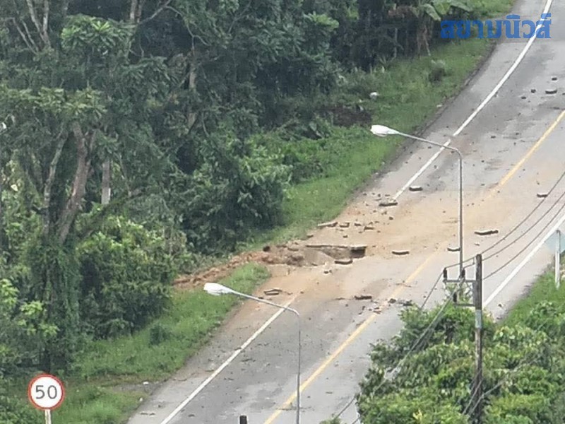 เจ้าหน้าที่ได้ปิดกั้นควบคุมพื้นที่เกิดเหตุ ปิดกันเส้นทาง เพื่อเตรียมเข้าตรวจสอบวัตถุหลักฐาน ในพื้นที่เกิดเหตุ พ.ต.อ.ดิเรก โฉมยงค์ รอง ผบก.ภ.จว.นราธิวาส พ.ต.ทพลวัฒน์ เทพษร หน.ชุดเก็บกู้และทำลายวัตถุระเบิด นปพ.กองกำกับการตำรวจภูธร จ.นราธิวาส ร.ต.อ.สถาบัน สุวรรณการณ์ หน.ชุดเก็บกู้และทำลายวัตถุระเบิด ตชด.447 เจ้าหน้าที่กองพิสูจน์หลักฐาน จ.นราธิวาส และเจ้าหน้าที่ที่เกี่ยวข้อง ร่วมเดินทางไปตรวจสอบจุดเกิดเหตุ