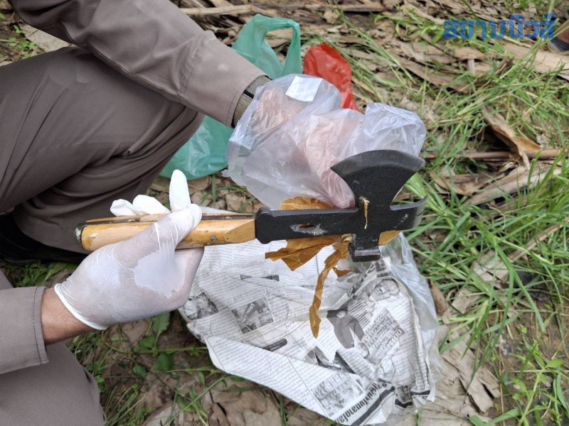 จากนั้น จึงได้กระจายกันออกค้นหาผู้ที่มากับผู้เสียชีวิต จนกระทั่งพบคนทั้งสองเดินลึกเข้าไปจากจุดเกิดเหตุ ห่างกันประมาณ 700 เมตร จึงได้สอบถามว่ามากับผู้เสียชีวิตหรือไม่ ซึ่งทั้งสองรับว่า มาด้วยกัน โดยผู้ที่ลงมือก่อเหตุ ชื่อ นายเฉียบ อายุ 49 ปี ชาว ต.ควนพัง อ.ร่อนพิบูลย์ จ.นครศรีธรรมราช ส่วนผู้หญิงซึ่งเป็นภรรยา ชื่อ น.ส.ประภา อายุ 57 ปี ชาว ต.หัวเดียด อ.เมืองตาก จ.ตาก ตรวจค้นในกระเป๋าเสื้อผ้า พบขวานที่ใช้สังหารผู้เสียชีวิต 1 ด้าม น้ำมันเบนซินบรรจุในขวดน้ำดื่ม ขนาด 0.6 ลิตร จำนวน 2 ขวด ไฟแช็ค 1 อัน และธูป 1 ห่อ