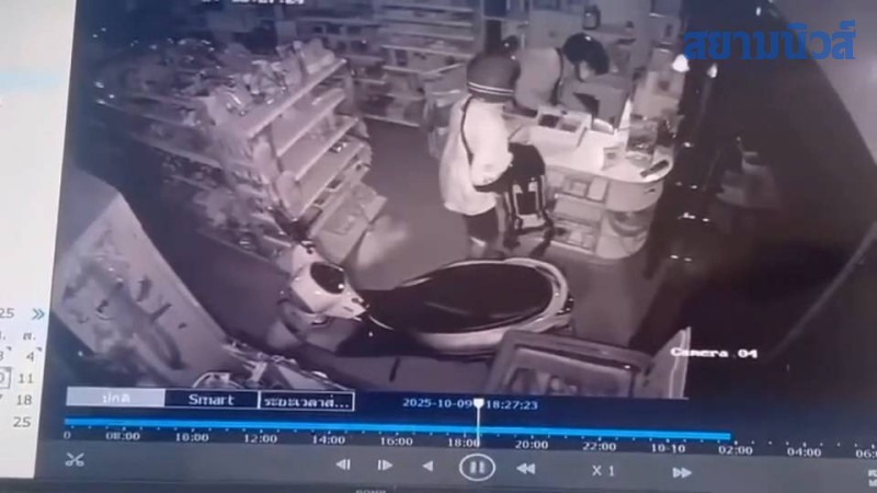 ซึ่งภาพจากกล้องวงจรปิดจะเห็นได้ว่า มีคนร้ายลักษณะอ้วน ผอม 2 คน โดยคนอ้วนเป็นคนขับขี่ สวมเสื้อสวมกางเกงขาสั้น เสื้อคลุมสีดำ สะพายกระเป่าแบบสะพายบ่าสีน้ำเงิน สวมถุงมือสีขาว และสวมหมวกกันน็อกแบบเต็มใบสีดำ ส่วนคนผอมซึ่งเป็นคนซ้อนสวมกางยีนขาสั้น เสื้อยืดคอกลมแขนยาวสีเหลือง สวมถุงมือสีแดง สวมหมวกกันน็อกเต็มใบสีแดง ในมือถือเป้มาด้วย ขี่รถจักรยานยนต์ยี่ห้อฮอนด้า ดรีม สีแดง ไม่ติดแผนป้ายทะเบียน เข้ามาจอดบริเวณหน้าร้าน จากนั้นได้ตัดแม่กุญแจที่ล็อคประตูหน้าร้านออก และเข้าไปในร้าน โดยมุ่งตรงไปที่เคาน์เตอร์ และช่วยกันหยิบของภายในร้านใส่เป้และกระเป๋าสะพายที่เตรียมมา อย่างใจเย็น โดยก่อนออกไปได้คว้าเอาลิ้นชักเงิน ที่มีเงินทอนอยู่ติดออกไปด้วย โดยใช้เวลาในการก่อเหตุประมาณ 15 นาที