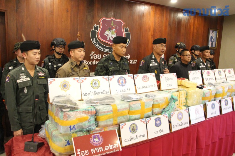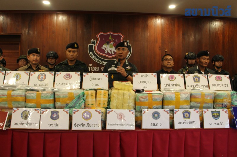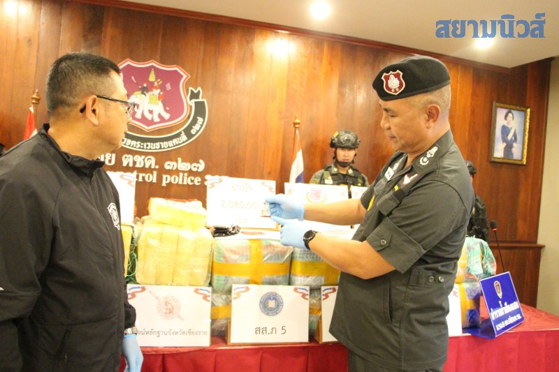 เมื่อเวลา 15.30 น.วันที่ 14 ต.ค.68 ที่กองร้อยตำรวจตระเวณชายแดน 327 พลตำรวจตรี วรพัฒน์ บุญมา ผบก.ตชด.ภาค 3 พันตำรวจเอกรังสิมันต์ สงเคราะห์ธรรม รอง ผบก.ตชด.ภาค 3 พันเอกธวัฒน์ อินกอง รอง ผบ.ฉก.ทัพเจ้าตาก พันตำรวจเอก อนุพันธ์ กันถารัตน์ ผกก.เชียงแสน ผบ.ร้อย ตชด.327 พันตำรวจตรี อนัญวัฒน์ รัตนวิชัย ผบ.ร้อย ตชด.327 พร้อมด้วยหน่วยงานที่เกี่ยวข้องได้ร่วมกันแถลงข่าวการสกัดกั้นและจากกลุ่มยาบ้าจำนวน 2,080,000 เม็ด พร้อมกับผู้ต้องหาจำนวน 2 คน ทราบชื่อคือ นายกวี สงสนนามสกุล อายุ 23 ปี และนายสุรพงษ์ สงวนนามสกุล อายุ 23 ปี ทั้ง 2 คนเป็น ชาว ต.เทอดไทย อ.แม่ฟ้าหลวง จ.เชียงราย