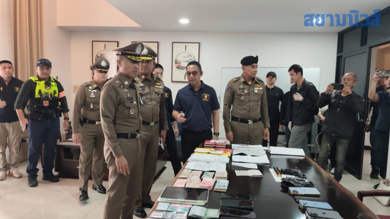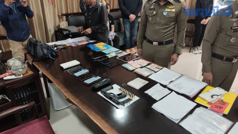 จากการตรวจค้นบ้านพักหรูหลังดังกล่าว เจ้าหน้าที่ได้ตรวจพบ อาวุธปืนหนึ่งกระบอก ซึ่งมีทะเบียนเป็นชื่อของคนไทย อยู่ระหว่างการขยายผล นอกจากนี้ยังพบ ธนบัตรทั้งเงินหยวนและเงินบาทจำนวนหนึ่ง และที่สำคัญคือการพบ กระเป๋าดิจิตอล (Digital Wallet) ที่เจ้าหน้าที่คาดว่า เป็นที่เก็บเงินดิจิทัลทั้งหมดที่ได้จากการฉ้อโกง รวมถึงเอกสารและหลักฐานอื่น ๆ อีกจำนวนมาก