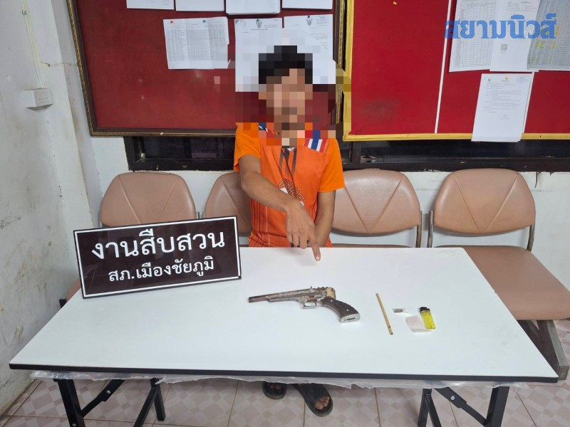 เมื่อวันที่ 3 พฤษจิกายน 2568 ร.ต.ท.ศุภกฤต ฉายแสง พนักงานสอบสวน สภ.เมืองชัยภูมิ ได้รับแจ้งจากนายสุวิทย์ สาวิสัย อายุ 53 ปี ว่าขณะที่นายวิชัย สาวิสัย อายุ 29 ปี ชาว ต.ห้วยต้อน อ.เมือง จ.ชัยภูมิ ลูกชายไปซื้อของที่ร้านค้ากลางหมู่บ้านฯ ได้ถูกแก๊งค้ายาบ้าในหมู่บ้านมาบังคับให้พาไปซื้อยาบ้า แต่ลูกชาย ได้ขัดขืนไม่ยอมพาไป จึงถูกหัวหน้าแก๊งชักปืนไทยประดิษฐ์พกสั้น ออกมากระหน่ำตีเข้าที่ใบหน้าและศีรษะ จนเลือดไหลอาบหน้า ได้รับบาดเจ็บสาหัส จึงนำตัวส่งรักษาที่โรงพยาบาลชัยภูมิ