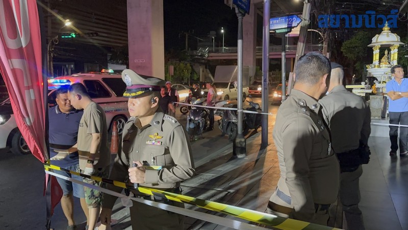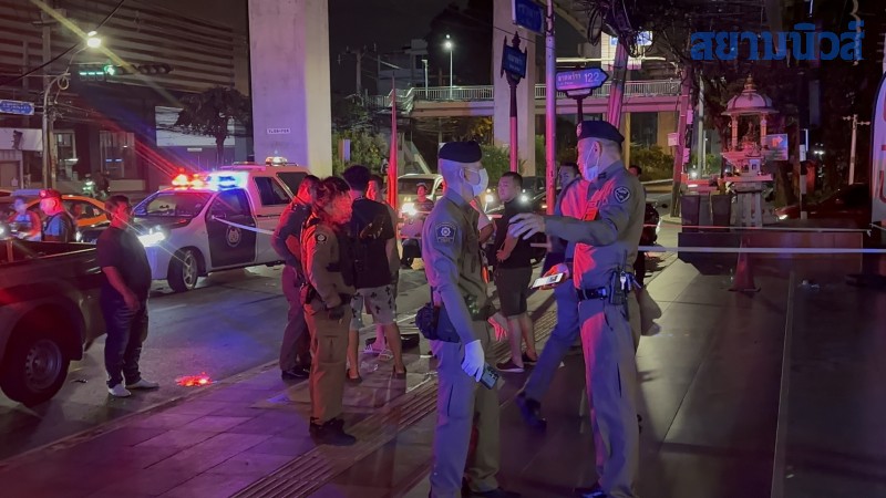 ที่เกิดเหตุบริเวณฟุตปาธ พบเพียงกองเลือดและปลอกกระสุนปืนกระจายเกลื่อนพื้นถนน รวม 5 ปลอก เจ้าหน้าที่กองพิสูจน์หลักฐาน(พฐ.)จึงบันทึกรวบรวมที่เกิดเหตุไว้เป็นหลักฐาน
