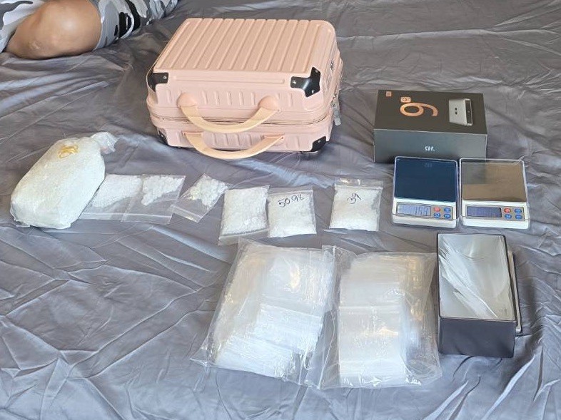 1.คีตามีนชนิดเกล็ดใสสีขาวบรรจุถุงพลาสติกใสรัดด้วยยางหนังสีแดง จำนวน 1 ถุง น้ำหนักประมาณ 914.4 กรัม
