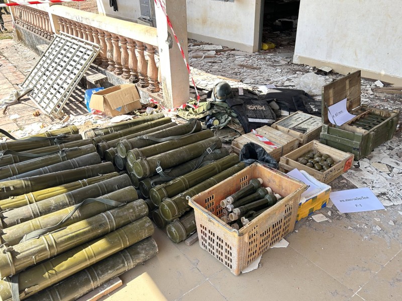 จากการเข้าเคลียร์พื้นที่บริเวณคาสิโนทมอดา ที่ฝ่ายกัมพูชารุกล้ำอธิปไตยของไทยมาก่อนหน้านี้นั้น นาวิกโยธินได้ตรวจยึดอาวุธของฝ่ายกัมพูชาได้จำนวนมากจากคลังแสงที่กัมพูชาอ้างว่าเป็นของหน่วยตำรวจตระเวนชายแดนของตน ซึ่งเป็นที่น่าตกใจมาก คือทุ่นระเบิดสังหารที่มีการดัดแปลงจากทุ่นระเบิดรถถัง และดัดแปลงจากกระสุนปืนใหญ่จำนวนหนึ่ง ในลักษณะจุดชนวนด้วยกระแสไฟฟ้า