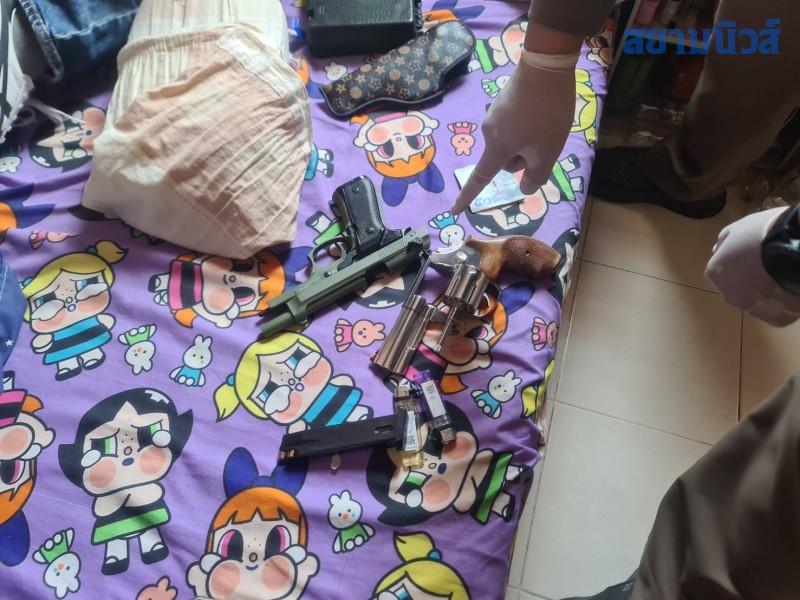 เมื่อไปถึงที่เกิดเหตุทราบจากผู้ดูแลบ้านว่า ผู้ก่อเหตุขับรถยนต์เก๋งโตโยต้า ยาริส สีขาว หลบหนีไปก่อนหน้า เจ้าหน้าที่จึงเร่งตรวจสอบกล้องวงจรปิดตามเส้นทางหลบหนี กระทั่งสามารถติดตามไปควบคุมตัวผู้ต้องหาได้ที่บ้านพักย่านซอยทรัพย์บุญชัย จังหวัดสมุทรปราการ โดยระดมกำลังกว่า 20 นาย เข้าควบคุมสถานการณ์ ตรวจค้นภายในบ้านพบอาวุธปืน 3 กระบอก เครื่องกระสุน และยาไอซ์จำนวนหนึ่ง ทราบชื่อผู้ก่อเหตุภายหลังคือ นายพรเทพ อายุ 48 ปี