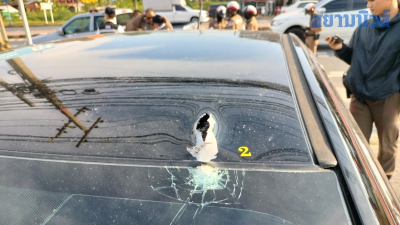 จนทำให้มีรถยนต์เก๋งของชาวบ้านยี่ห้อ ฮอนด้าซิตี้ สีดำ ทะเบียน 7กง-6670 กทม. ถูกกระสุนปืนลูกหลงยิงเจาะเข้าที่บริเวณเหนือขอบกระจกหลัง เยื้องกึ่งกลางมาทางซ้าย ทะลุออกที่เหนือกระะจกบานหน้าใกล้กับหัวมุมทางซ้าย จนมีเศษโลหะของตัวรถฉีกขาดและแหวกทะลุออกไปบนแผ่นกระจกหน้ารถ และเกิดการแตกร้าว ทำให้มีสะเก็ดปลิวมาตกใส่ที่ใบหน้าของ น.ส.ทิพวรรณ มั่นจิตร อายุ 29 ปี ชาว ม.8 ต.แปลงยาว อ.แปลงยาว จ.ฉะเชิงเทรา ซึ่งนั่งมาบนเบาะหน้ารถทางซ้ายภายในรถยนต์เก๋ง ได้รับบาดเจ็บมีบาดแผลจำนวน 3 จุดบนหน้าผากเหนือคิ้วด้านขวา อาการไม่สาหัส