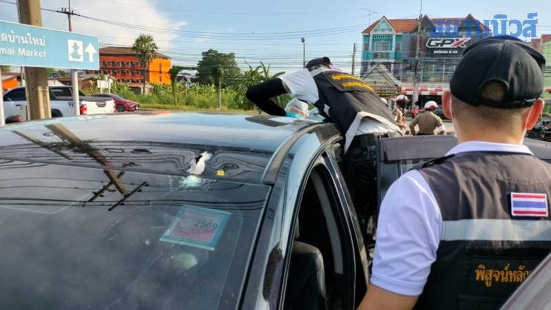 โดยที่ชาวบ้านบางรายระบุว่า รถยนต์ของตำรวจทางหลวงได้ถูกคนร้ายไล่ตามประกบยิงมาตามท้องถนน แต่ได้มีรถยนต์เก๋งของชาวบ้านขับขวางทางอยู่จึงถูกยิงใส่ไปด้วย โดยที่ผู้พบเห็นเหตุการณ์สามารถจดจำทะเบียนรถคันก่อเหตุ ที่ติดมาเฉพาะด้านหน้าไว้ได้พบเป็นรถคันหมายเลขทะเบียน จพ-9131 ลพบุรี ล่าสุด มีชาวบ้านพบเห็นรถยนต์คันก่อเหตุ ได้หลบหนีไปจอดซุกอยู่ในย่านสถานีรถไฟบางพระ ในเขต ต.บางเตย อ.เมือง จ.ฉะเชิงเทรา โดยทาง ภ.จว.ฉะเชิงเทรา ได้นำชุดปฏิบัติการพิเศษ (นปพ.) ร่วมกับ จนท. ตร.สภ.เมืองฉะเชิงเทรา เข้าปิดล้อมพื้นที่ไว้แล้ว