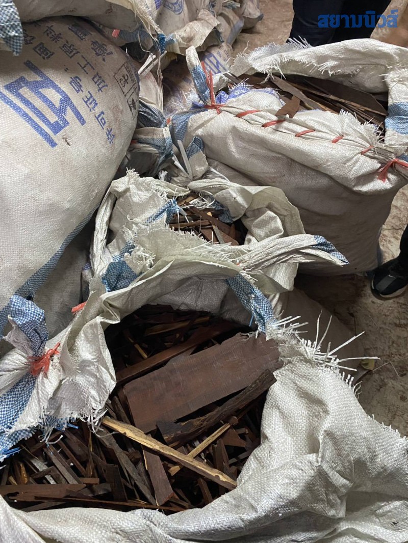 2. เศษไม้จันทร์หอมและไม้พยุง บรรจุอยู่ในกระสอบ จำนวน 498 กระสอบ หนักกระสอบละ 40 กก. น้ำหนักรวม 19,920 กก.(ประมาณ 20 ตัน)
