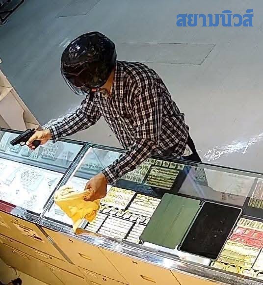 จากการสอบสวนเบื้องต้นทราบว่า คนร้ายเป็นชาย 1 คน แต่งกายสวมเสื้อแขนยาว ลายสก็อตสีขาวดำ กางเกงขายาวสีดำ รองเท้าคัทชูสีดำ กระเป๋าคาดเอว สวมใส่หมวกกันน็อคแบบเต็มใบโดย ใช้อาวุธปืนไม่ทราบขนาดก่อเหตุชิงทรัพย์ร้านทอง ได้ทรัพย์สินเป็นสร้อยคอทองคำน้ำหนักจำนวน 1 ถาด ยังไม่ทราบน้ำหนักที่แท้จริง หลังก่อเหตุ ขี่รถ จยย. Honda wave สีเทาดำ ไม่ติดแผ่นป้ายทะเบียน หลบหนี มุ่งหน้าสู่ถนนเพชรเกษม หายตัวไปอย่างลอยนวล ซึ่งขณะนี้เจ้าหน้าที่ตำรวจยังไม่ทราบเส้นทางในการหลบหนีของคนร้าย ทั้งนี้ ได้ประสานเจ้าหน้าที่ตั้งด่านช่วยกันสกัดจับ