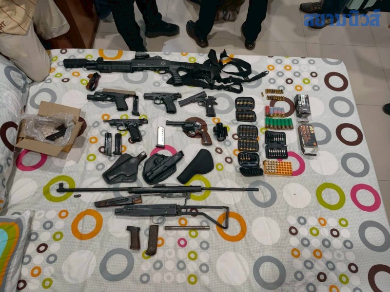 ผลการตรวจค้น พบอาวุธปืนเพิ่มเติมอีกหลายรายการ ได้แก่ อาวุธปืนลูกซอง จำนวน 1 กระบอก, อาวุธปืนสั้นกึ่งอัตโนมัติ ขนาด 9 มม. จำนวน 2 กระบอก, อาวุธปืนสั้น ขนาด .38 จำนวน 1 กระบอก, อาวุธปืนสั้นดัดแปลงไม่ทราบขนาด จำนวน 1 กระบอก, อาวุธปืนลูกซองสั้นแบบหักลำ ขนาด 12 เกท จำนวน 1 กระบอก, อาวุธปืนยาว ไม่ทราบขนาด จำนวน 1 กระบอก และกระสุนปืนขนาดต่างๆ รวมกว่า 150 นัด