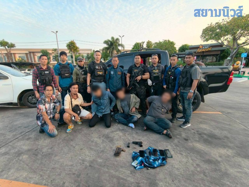 จากการตรวจค้นสามารถจับกุมชาย จำนวน 3 ราย ทราบชื่อ นายธวัชชัย อายุ 35 ปี เป็นผู้ขับรถนำอาวุธปืนมาส่งให้เจ้าหน้าที่สายลับที่ปลอมตัว โดยมี นายธนภัทร อายุ 41 ปี และ นายอภิสิทธิ์ อายุ 26 ปี นั่งมาในรถด้วย เพื่อคอยทำหน้าที่ดูต้นทางและเฝ้าระวังเจ้าหน้าที่ขณะส่งมอบอาวุธปืน