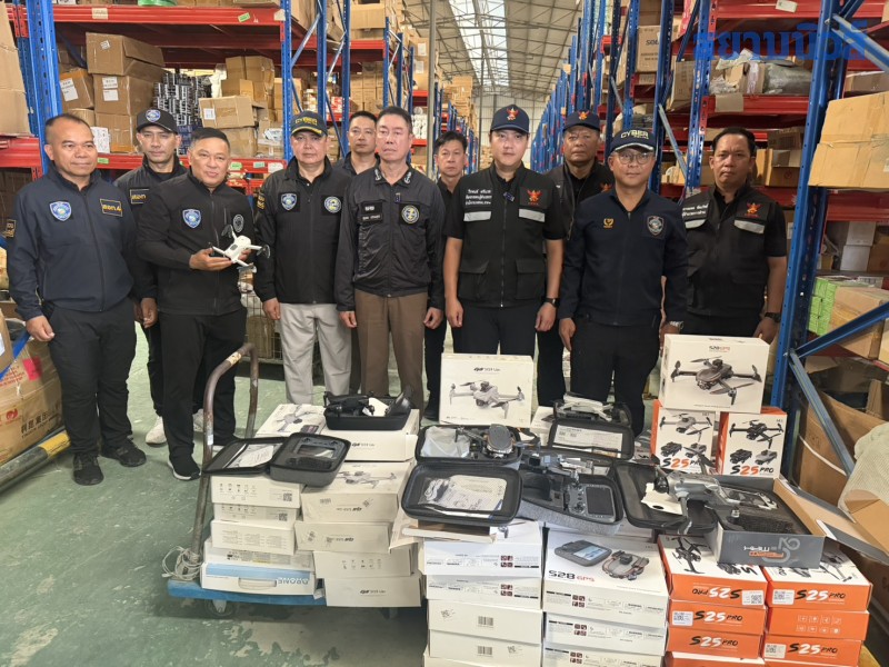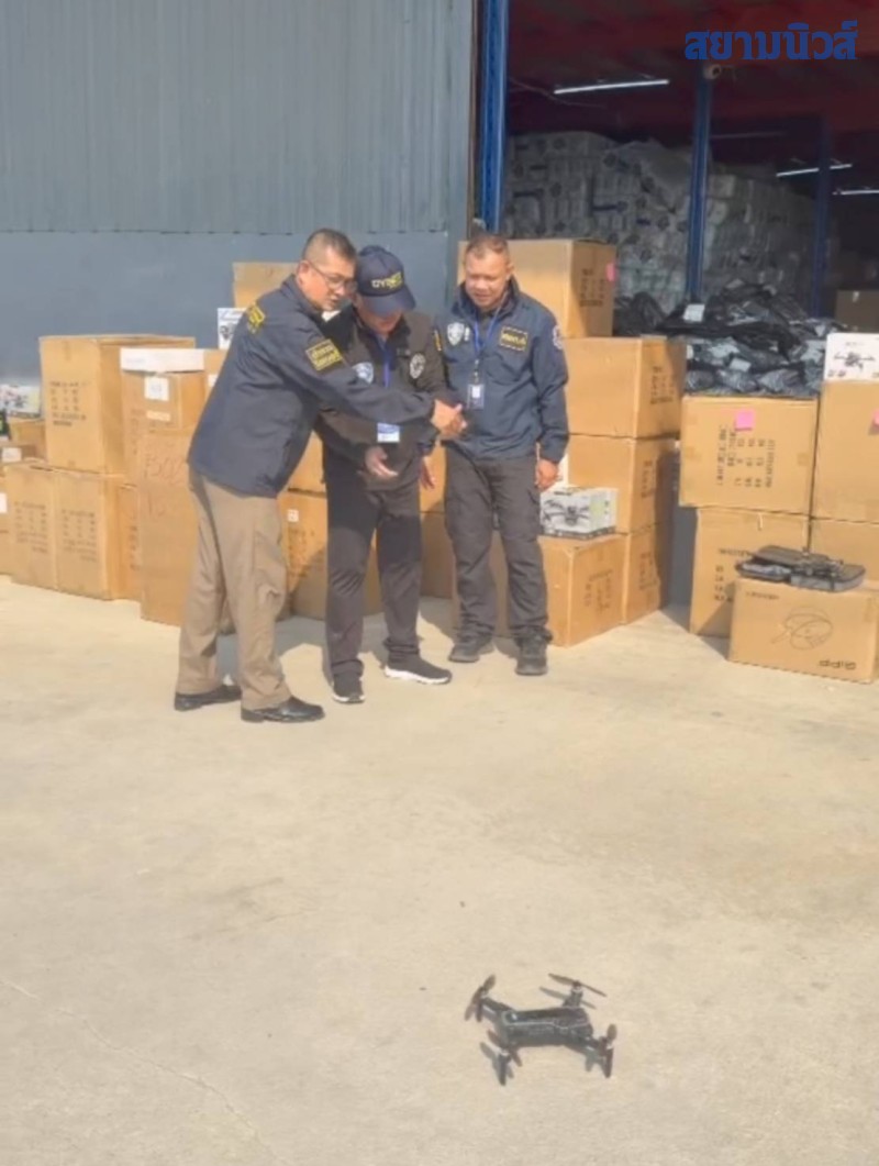 จากการลงพื้นที่ตรวจสอบภายในโกดัง เจ้าหน้าที่พบสินค้าหลายรายการ โดยเฉพาะ โดรน (อากาศยานไร้คนขับ) จำนวนมาก ซึ่งจากการตรวจสอบเบื้องต้นพบว่าเป็นโดรนที่ลักลอบนำเข้าโดยไม่ถูกต้องตามกฎหมาย ไม่มีเอกสารรับรองจากกรมศุลกากร ไม่มีหมายเลขซีเรียลนัมเบอร์ (Serial Number) และไม่ผ่านมาตรฐานการรับรองใดๆ
