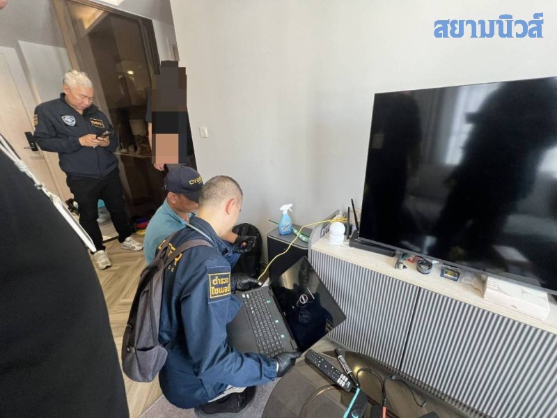 ต่อมา พล.ต.ต.ทรงกลด เกริกกฤตยา ผบก.ตอท. จึงได้มอบหมายให้ พ.ต.อ.มรกต แสงสระคู รอง ผบก.อก.บช.สอท., และ พ.ต.อ.ก่อเกียรติ รุ่งสังข์ ผกก.กลุ่มงานรักษาความมั่นคงปลอดภัยทางไซเบอร์ บก.ตอท. พร้อมด้วย พ.ต.ท.ชานนท์ คำนวนศักดิ์ รอง ผกก.กลุ่มงานตรวจพิสูจน์พยานหลักฐานดิจิทัล บก.ตอท., พ.ต.ท.อรรคพล อุทัยผล และ พ.ต.ท.ภัทรินทร ทรงบัณฑิต สว.กลุ่มงานรักษาความมั่นคงปลอดภัยทางไซเบอร์ บก.ตอท. นำกำลังตำรวจไซเบอร์สนธิกำลังร่วมกับ พ.ต.ท.พิเชษฐ์ แสงบัณฑิตย์ สว.กก.2 บก.สส.สตม. พร้อมเจ้าหน้าที่ชุดสืบสวนจาก บก.สส.สตม. ร่วมกันเข้าตรวจค้นห้องพัก ชั้น 7 ของคอนโดแห่งหนึ่งย่านทองหล่อ แขวงคลองตันเหนือ เขตวัฒนา กทม.