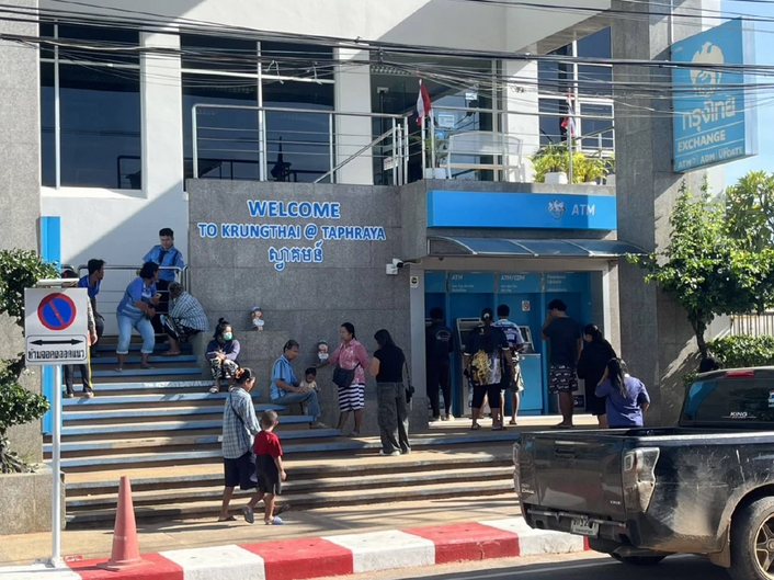 เมื่อวันที่ 7 ตุลาคม 2568 บรรยากาศบริเวณหน้าธนาคารกรุงไทย สาขาตาพระยา จังหวัดสระแก้ว เต็มไปด้วยประชาชนจำนวนมากที่เดินทางมาตรวจสอบสิทธิ์และเช็กยอดเงิน หลังได้รับเงินเยียวยาจากภาครัฐ ตามมติคณะรัฐมนตรีเมื่อวันที่ 26 สิงหาคม ที่ผ่านมา
