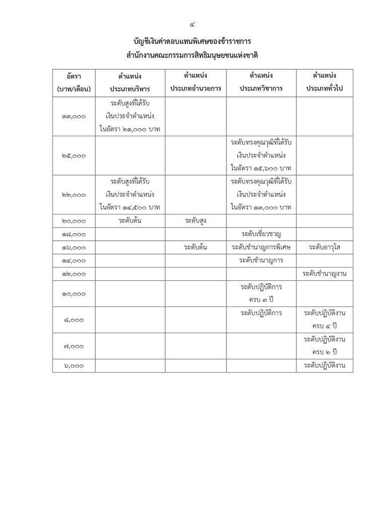 ระดับสูงที่ได้รับเงินประจำตำแหน่งในอัตรา 21,000 บาท ได้รับค่าตอบแทนอัตรา 33,000 บาท