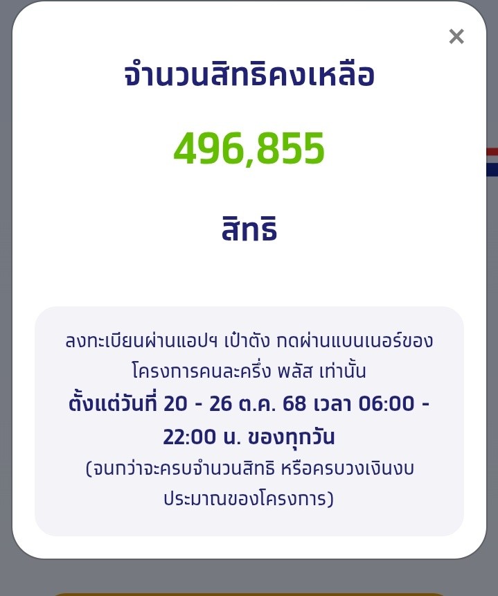 อย่างไรก็ตาม จากการตรวจสอบล่สสุดเมื่อเวลา 02:45 น. พบว่า สิทธิยังคงเหลือกว่า 4 แสนสิทธิ
