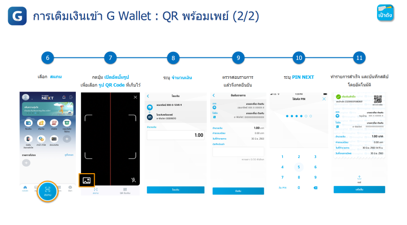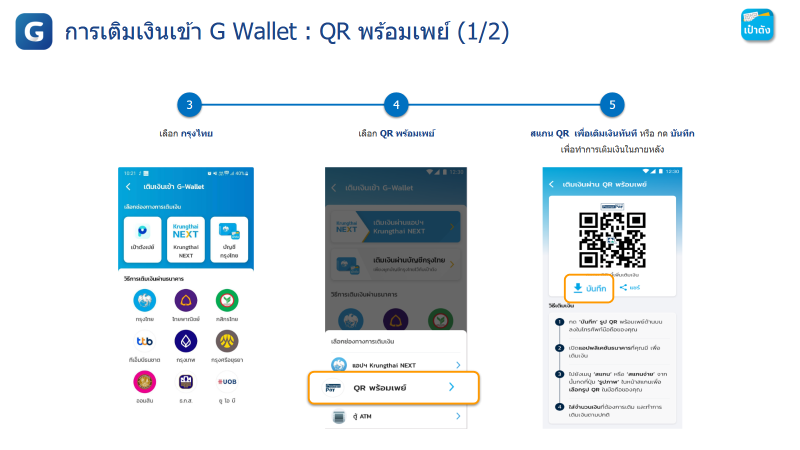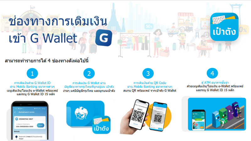 -เข้าแอปฯ เป๋าตัง เลือกเมนูเติมเงิน G Wallet > สแกน QR หรือบันทึกเพื่อเติมภายหลัง