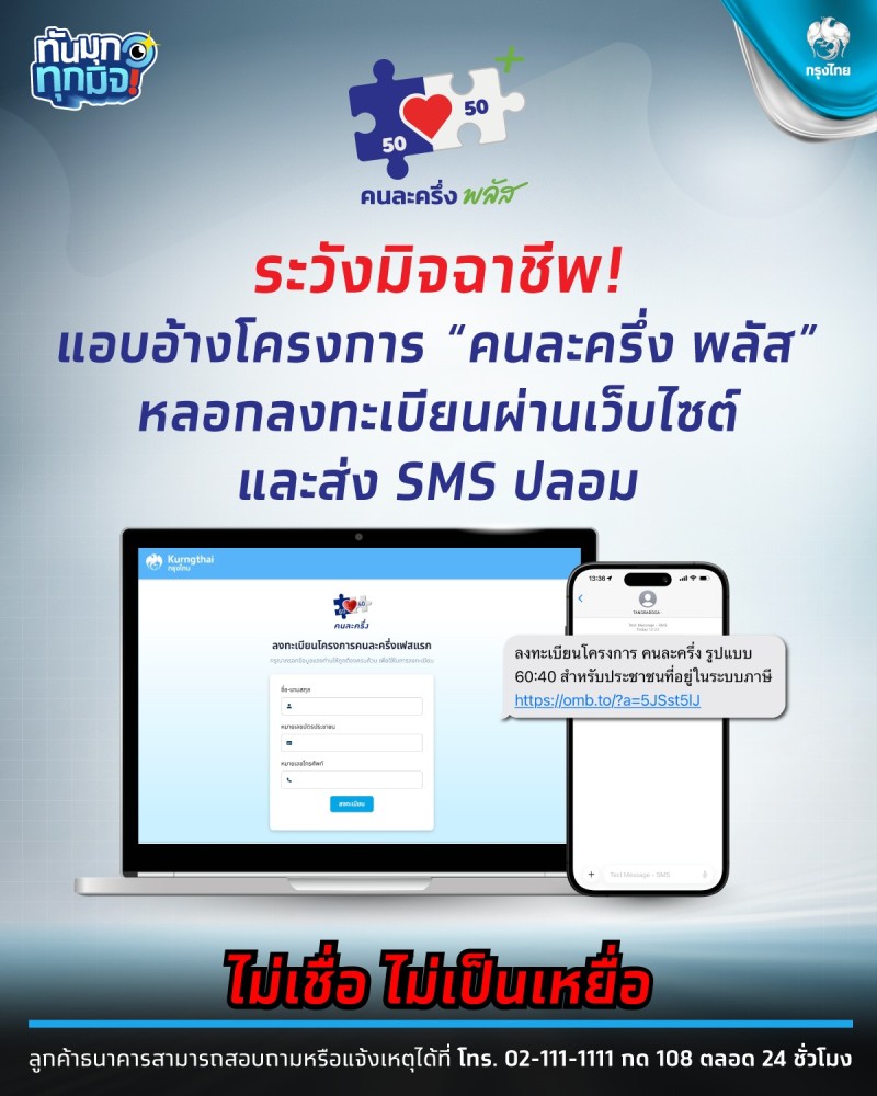 วันที่ 22 ตุลาคม 2568 มีรายงานว่า เพจเฟซบุ๊ก Krungthai Care ได้โพสต์ข้อความเตือนถึงประชาชนระบุว่า ระวังมิจฉาชีพ! แอบอ้างโครงการ "คนละครึ่ง พลัส" หลอกให้ลงทะเบียนผ่านเว็บไซต์ และส่ง SMS ปลอม