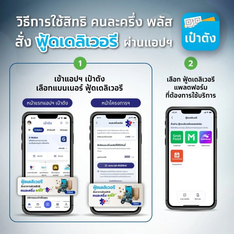 วิธีใช้สิทธิ คนละครึ่งพลัส สั่งฟู้ดเดลิเวอรี ผ่านแอปฯ เป๋าตัง