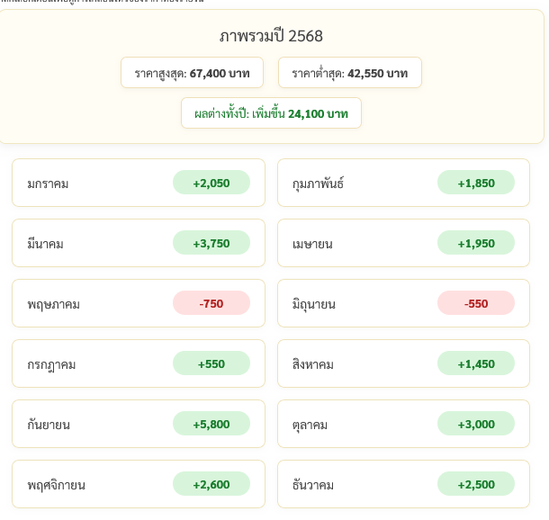 โดยมีถิติการปรับราคาทองขึ้น-ลงในแต่ละเดือนดังนี้