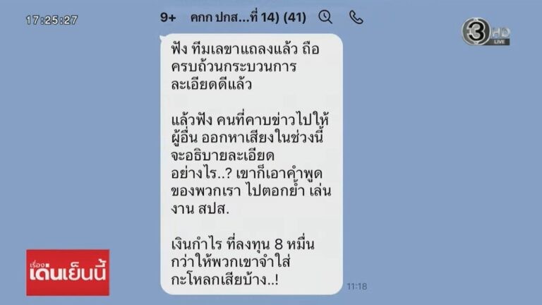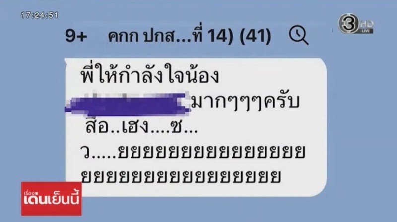 วันเดียวกันนี้ รายการเรื่องเด่นเย็นนี้ ได้เปิดเผยภาพบทสนทนาฉบับเต็ม โดยเป็นข้อความในกรุ๊ปไลน์ชื่อว่า คกก ปกส ที่ 14 มีสมาชิกในกลุ่มดังกล่าว 41 ราย ซึ่งมีข้อความจากผู้ใช้รายหนึ่งว่า พี่ให้กำลังใจน้อง มากๆๆๆ ครับ สื่อเฮงซวยยยยยย ซึ่งน้องที่ถูกกล่าวถึงได้โควตข้อความตอบว่า ขอบคุณในกำลังใจที่มอบให้ผมครับ และอีกคนก็มาขอบคุณด้วยเช่นกันว่า ผมด้วยครับท่าน