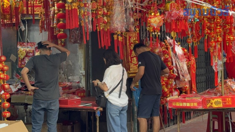 บรรยากาศวันจ่ายเทศกาลตรุษจีนที่ถนนเยาวราช เขตสัมพันธวงศ์ กรุงเทพมหานคร ปีนี้ไม่คึกคักเท่าที่ผ่านมา แม้ร้านค้าจะประดับโคมแดงและจัดเตรียมของไหว้ครบครัน ทั้งผลไม้ เป็ด ไก่ และขนมมงคล แต่จำนวนประชาชนที่ออกมาจับจ่ายยังบางตา การสัญจรไม่หนาแน่นเหมือนทุกปี