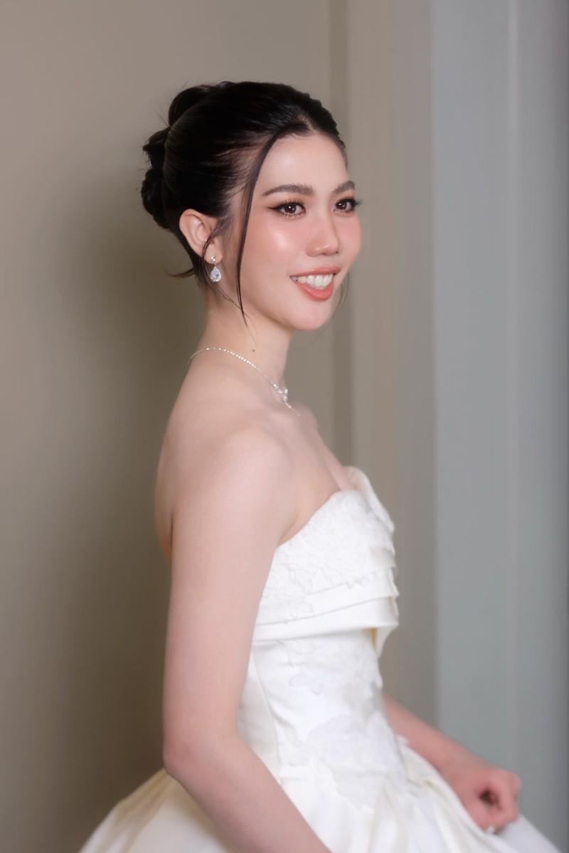 ที่ช่วยเสริมลุคให้เจ้าสาวดูอ่อนหวานและหรูหราไปพร้อมกัน เครื่องประดับก็คัดมาเข้าคู่สุด ๆ ทั้งต่างหู ทับทรวง เข็มกลัด และเข็มขัดโทนสีชมพู ที่ช่วยขับให้ตัวเจ้าสาวนั้นดูอ่อนหวานยิ่งขึ้น ที่สำคัญผลงานชุดไทยพิธีเช้านี้มาจาก ห้องเสื้อเรือนวิวาห์