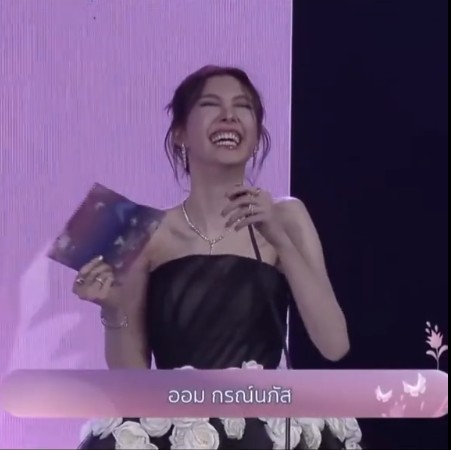 โดยสาวออม ได้ขึ้นไปประกาศรางวัล ด้วยชุดเดรสสวย ออร่าอย่างมาก แม้จะมีสะดุดเล็กน้อย แต่ก็ไม่ทำให้เธอถูกละลายตาจากผู้ชมได้เลยหละค่ะ ซึ่งออม ได้เป็นผู้ประกาศรางวัล Leading Boys’ Love Star of the Year หรือ นักแสดงนำ Boys' Love แห่งปี โดยผที่คว้ารางวัลนี้ไป ก็คือ นักแสดงหนุ่ม มาย ภาคภูมิ จากซีรีส์เรื่อง Shine นั่นเอง แต่ในระหว่างที่เธอกำลังประกาศรางวัล ด้วยความตื่นเต้น ทำให้เธอพูดผิด ก่อนจะแสดงท่าทีขำขัน ออกมา จนทำให้เธอโดนวิจารณ์อย่างมากมาย