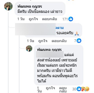 แต่ทว่าในโพสต์ดังกล่าวนั้นดีเจแมน ก็ได้มีการเข้ามาคอมเมนต์ ว่า มีครับเป็นชื่อของผมเอง เล่ายาว พร้อมกับบอกด้วยว่า แต่แค่สงสารน้องเม เพราะเมเริ่มมาแต่แรก เม จะหนักมากๆ เรามีข่าวไม่ดีพร้อมกัน ตอนนั้นพูดอะไรไม่ได้ งานนี้ก็เป็นการสะกิดต่อมเผือก และจับตารอดีเจแมนออกมาเล่าอย่างใจจดใจจ่อ