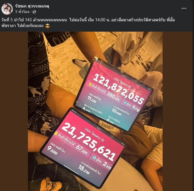 แม้จะผ่านไปหลายวันแต่กระแสก็ยังแรงไม่ตก สำหรับ เทศกาลเจนนี่ หรือไลฟ์สดขายของ เจนนี่ รัชนก ซึ่งวันที่ 5 ปิดยอดการขายไปที่ 143 ล้านบาท งานนี้ทำให้มีบรรดาแม่ค้าพ่อค้าออนไลน์ อินฟลูเอนเซอร์ และคนบันเทิง อยากมาไลฟ์ขายของกับสาวเจนนี่จำนวนมาก