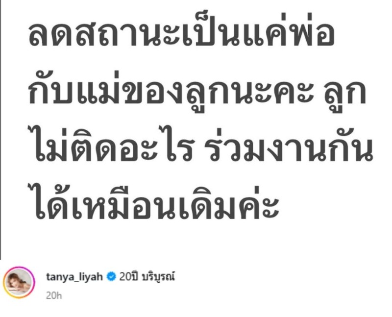 ลดสถานะเป็นแค่พ่อกับแม่ของลูกนะคะ ลูกไม่ติดอะไร ร่วมงานกันได้เหมือนเดิมค่ะ